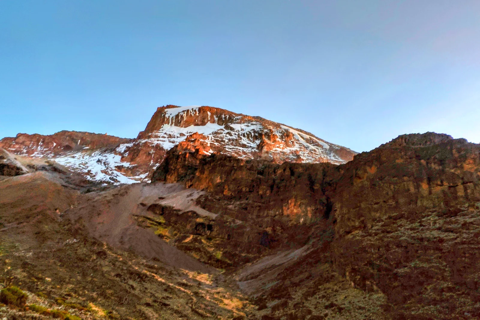 This will be a shorter day of hiking to allow for acclimatization. After breakfast, you'll begin ascending the challenging Barranco Wall, which involves some scrambling. Once you conquer the wall, you'll be rewarded with stunning views of glacial valleys.